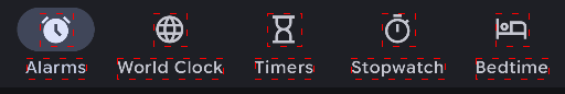 {count: 5, retval: ['Alarms','World Clock','Timers','Stopwatch','Bedtime']